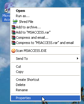5) “Right click” on Microsoft access icon and click on “Properties” then go to shortcut menu and lastly type a shortcut in the front of “Shortcut key”. For example “Ctrl+Alt+A” and then click “OK” as given below.